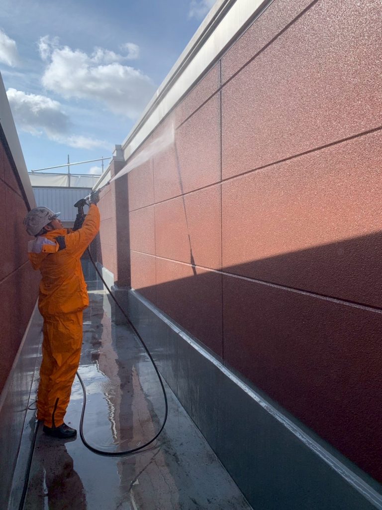 高圧洗浄で凹凸や劣化した部分をきれいにすることで、